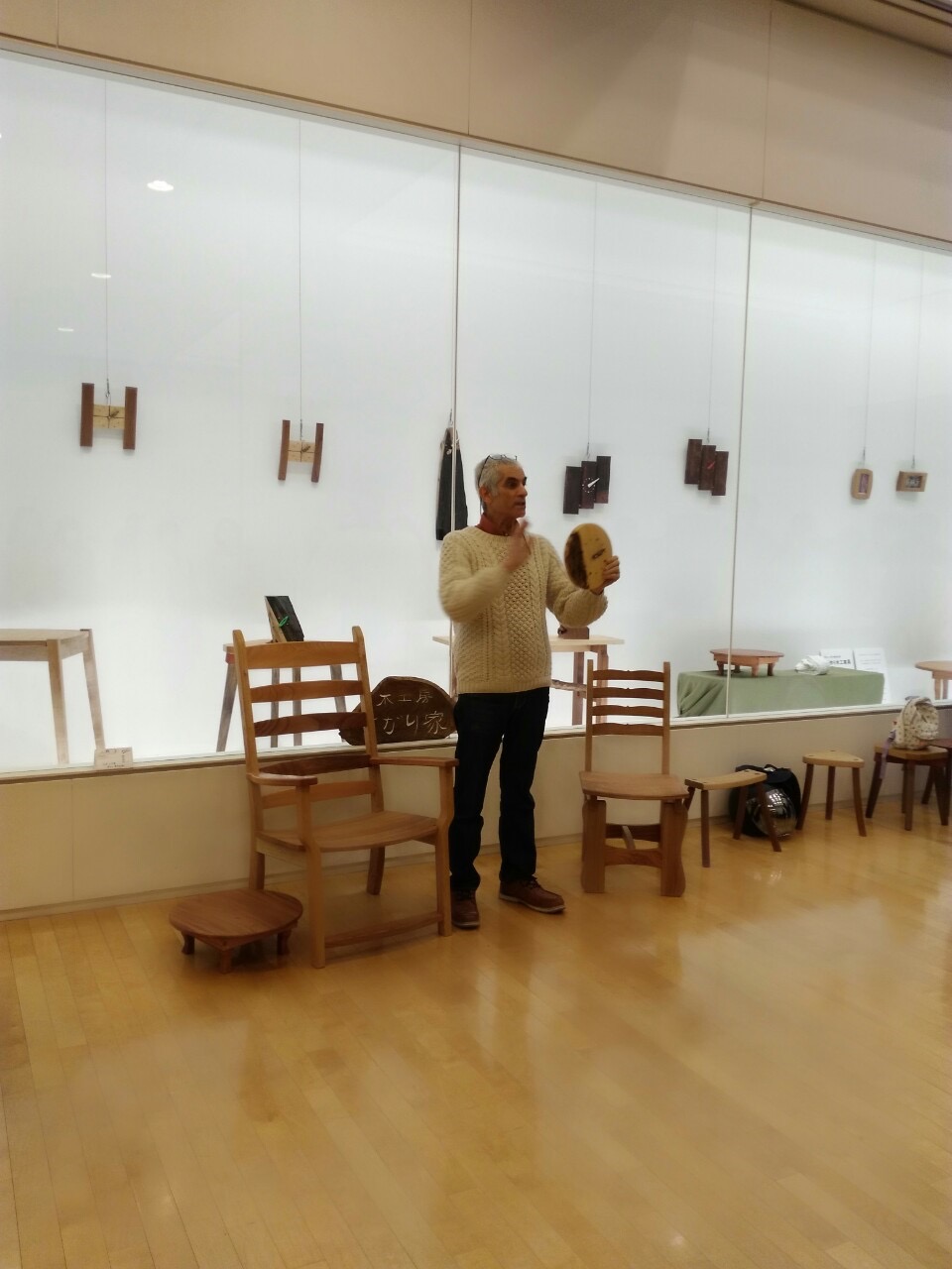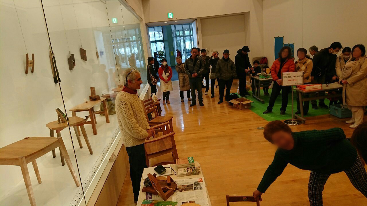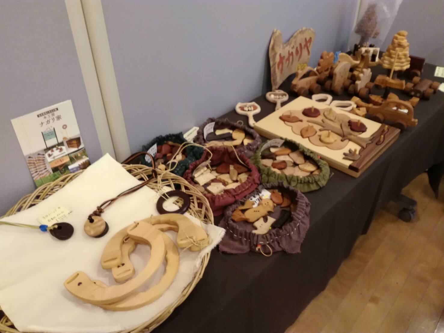 木のおもちゃの展示、ワークショップ、